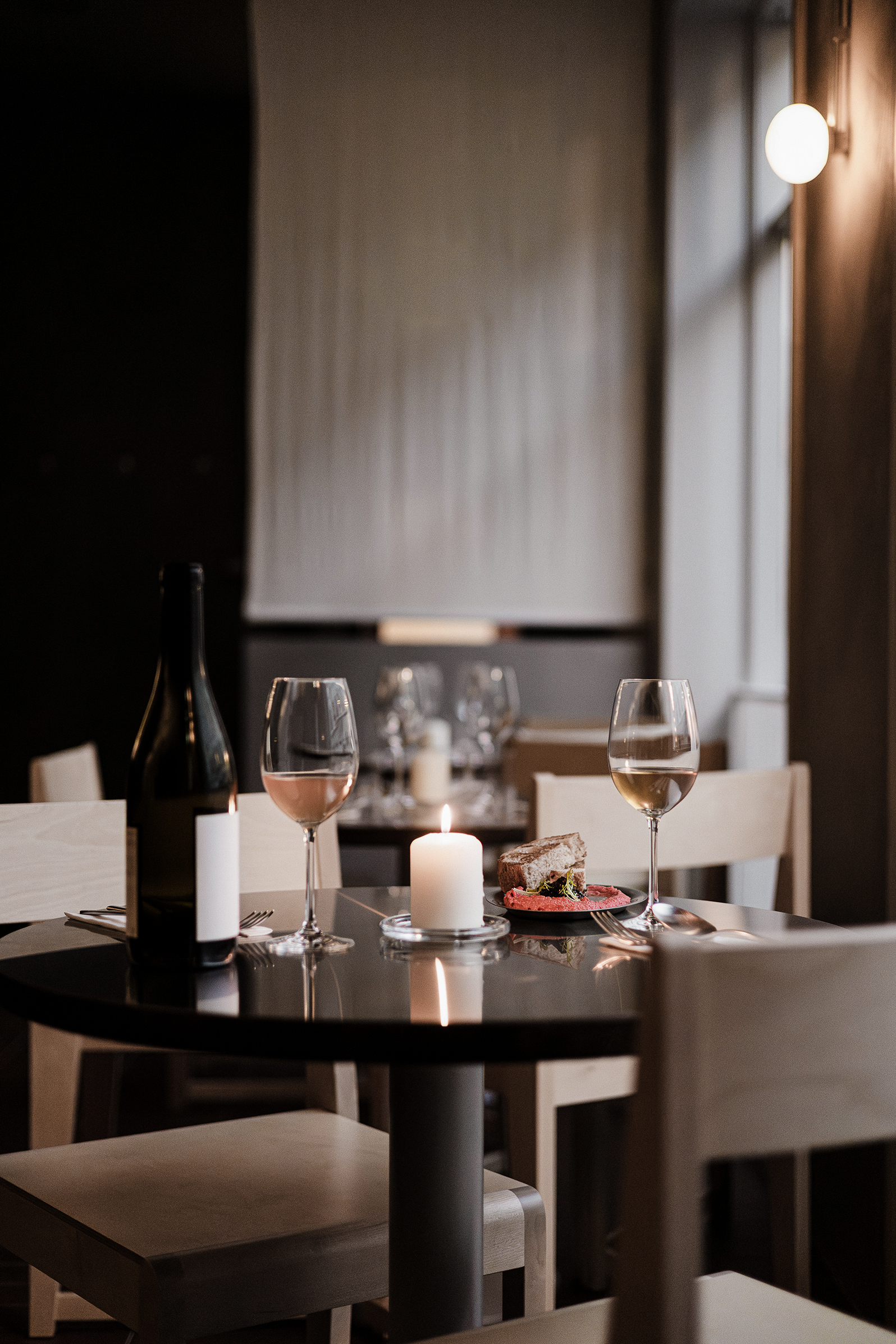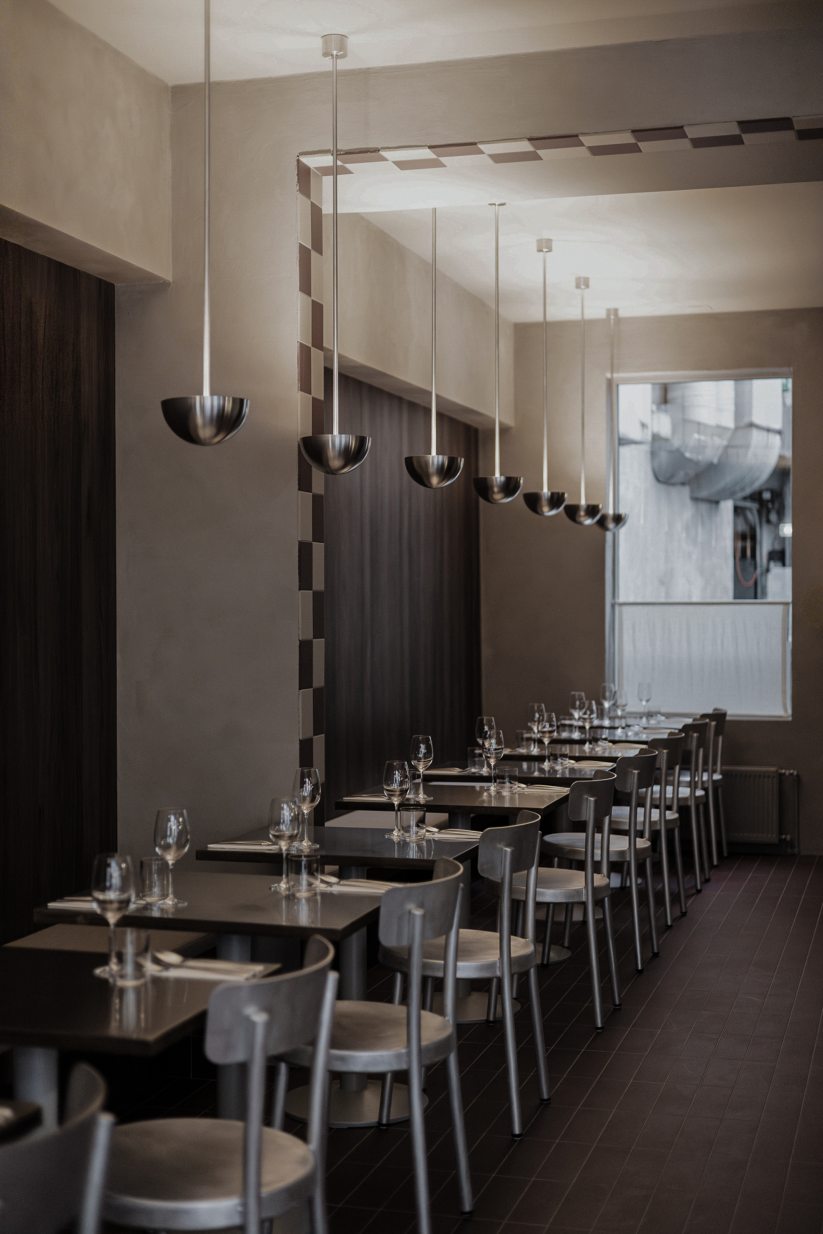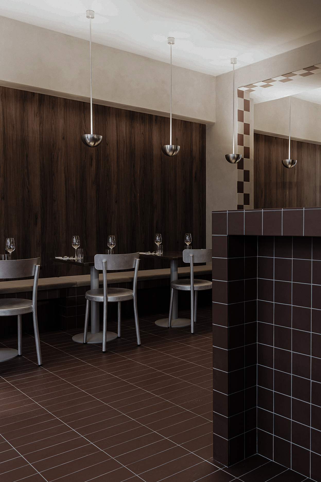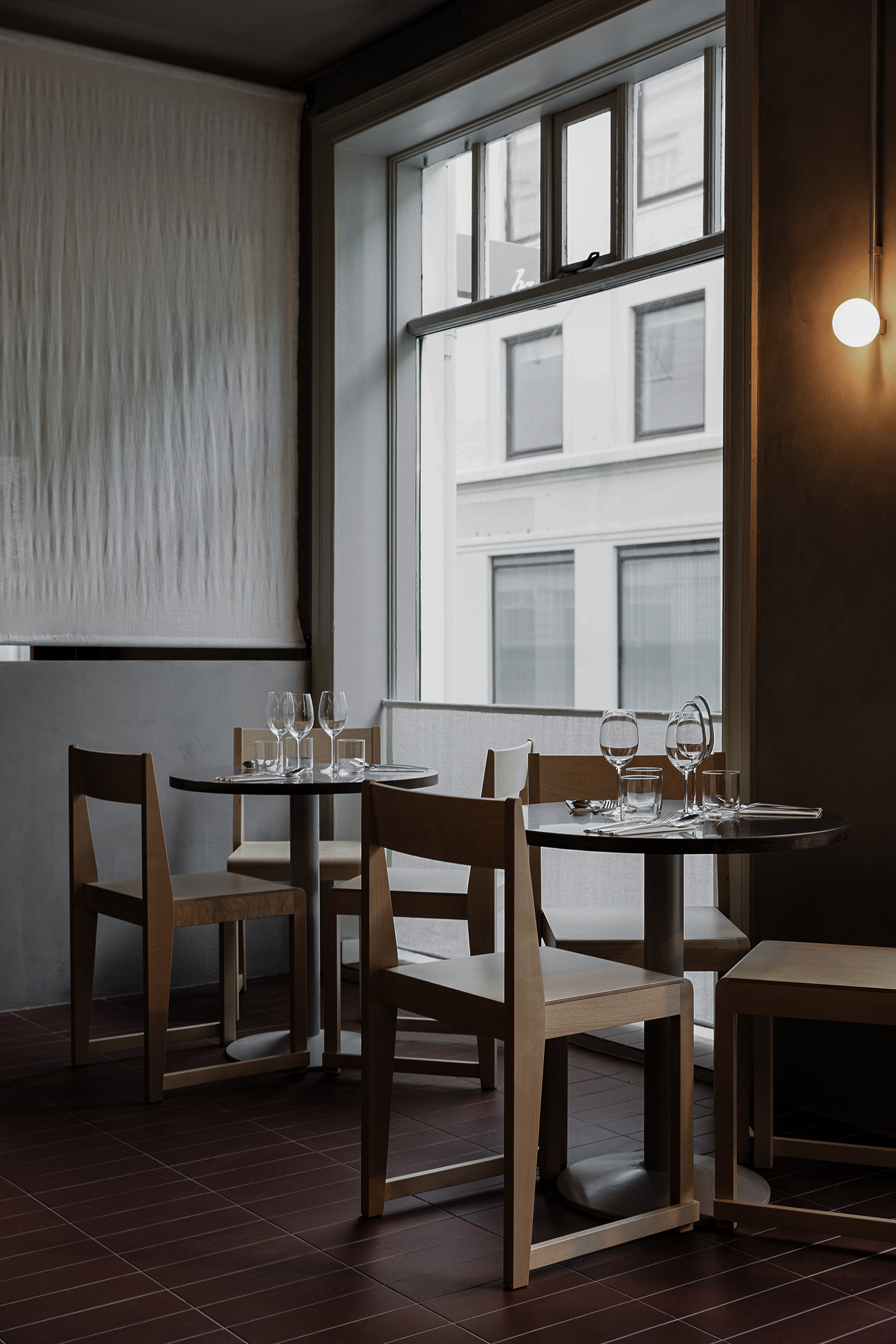 Osteria Bari is a restaurant and wine bar located in downtown Reykjavík, opening in December 2025. Aron Freyr and I developed the project in its entirety at Sítrus, designing everything from the branding to the interior concept. Drawing inspiration from the warmth, simplicity, and convivial atmosphere of traditional Italian osterias, the space is furnished with chairs and wall lights by FRAMA, while the pendant lighting above the dining tables was developed in collaboration with Casegoods. A custom-sized pendant light above the bar was designed by Caia Leifsdotter. The material palette combines burgundy tiles from TopCer with walnut paneling, steel, and linen, creating a rich yet understated environment that balances warmth and durability.