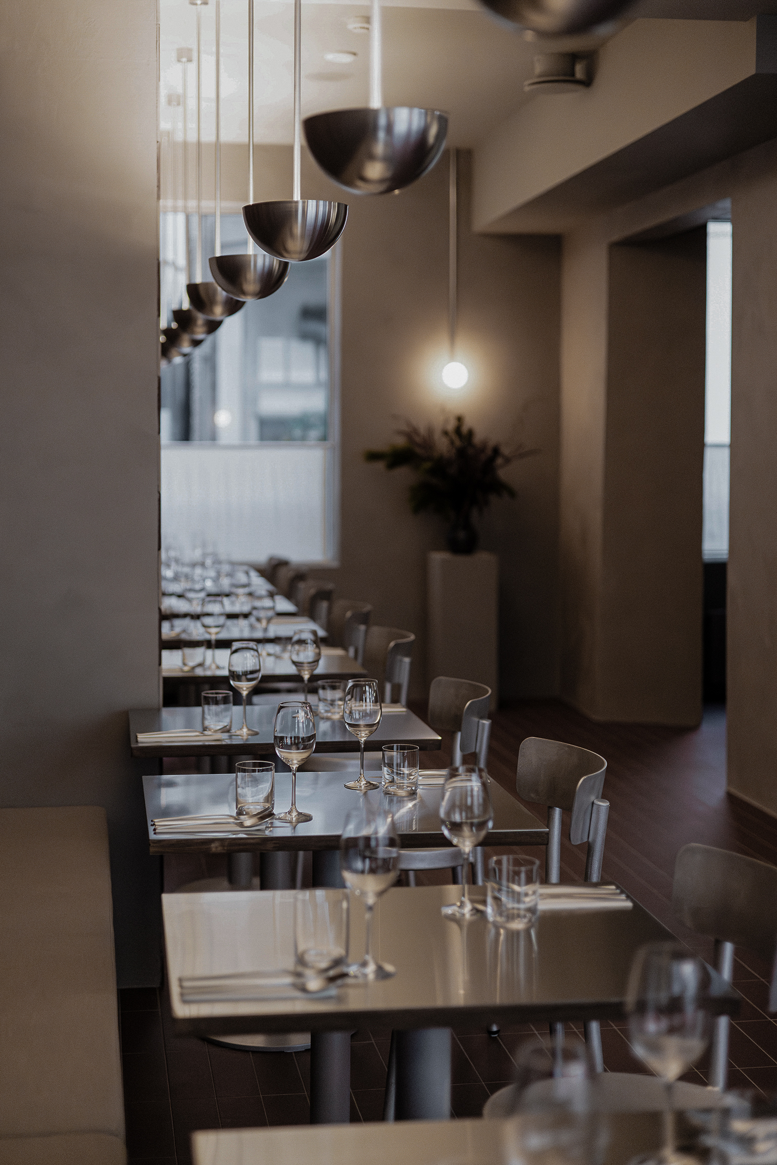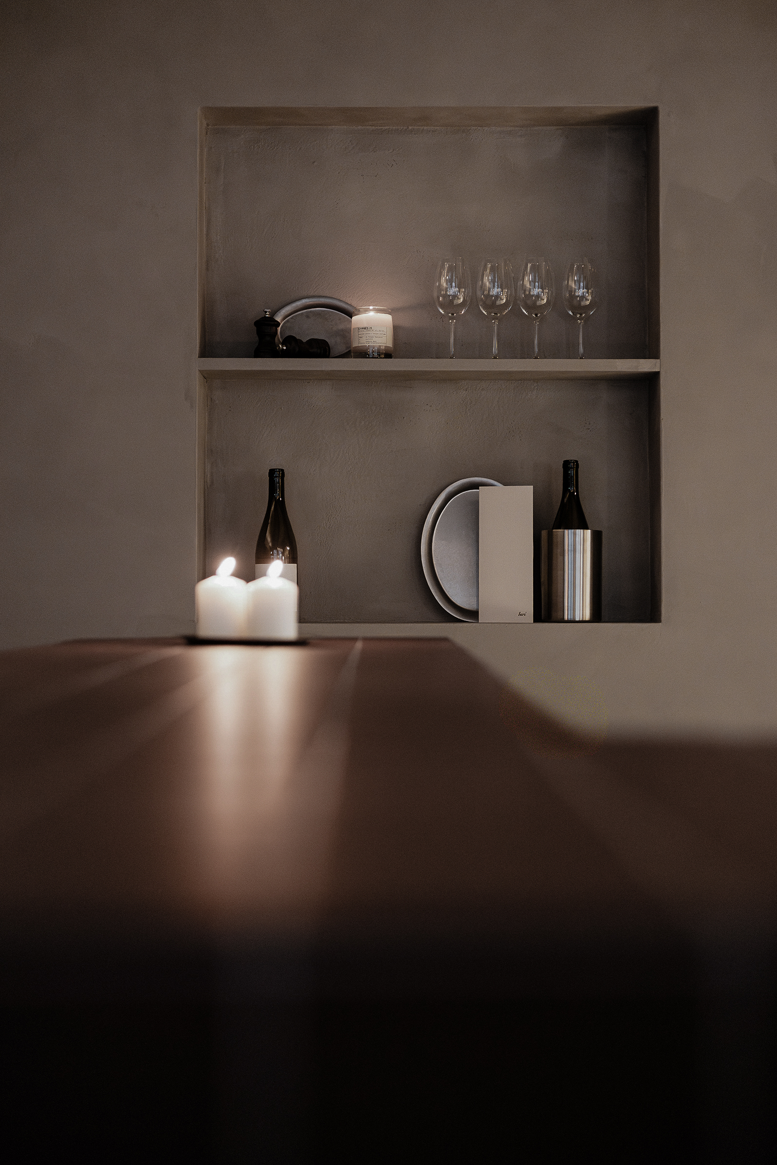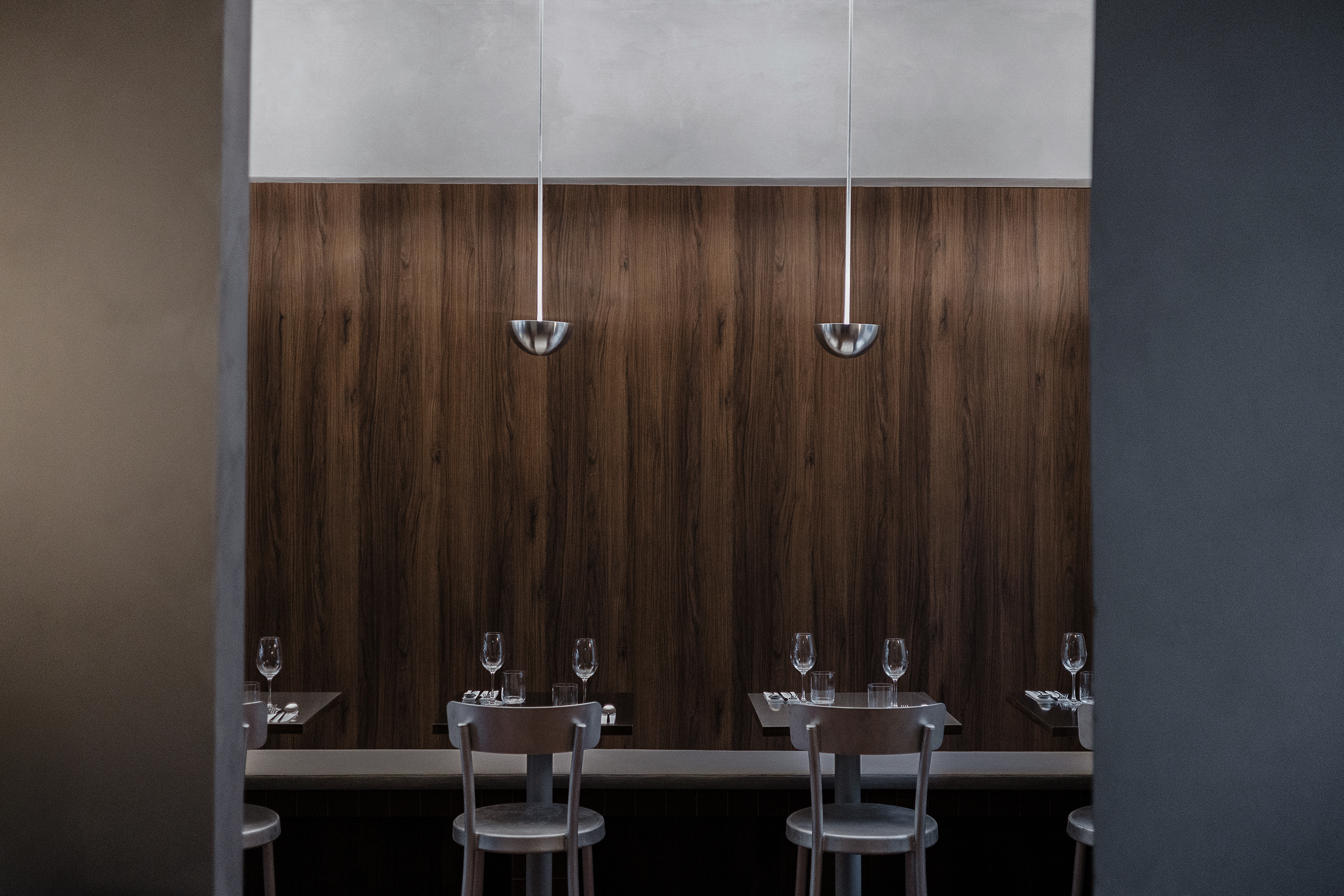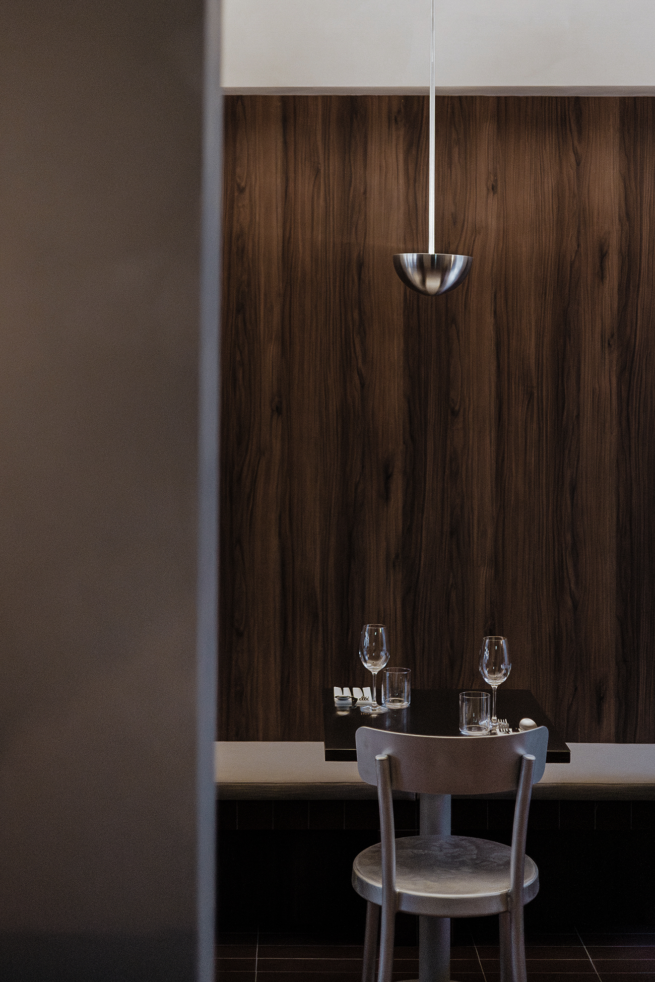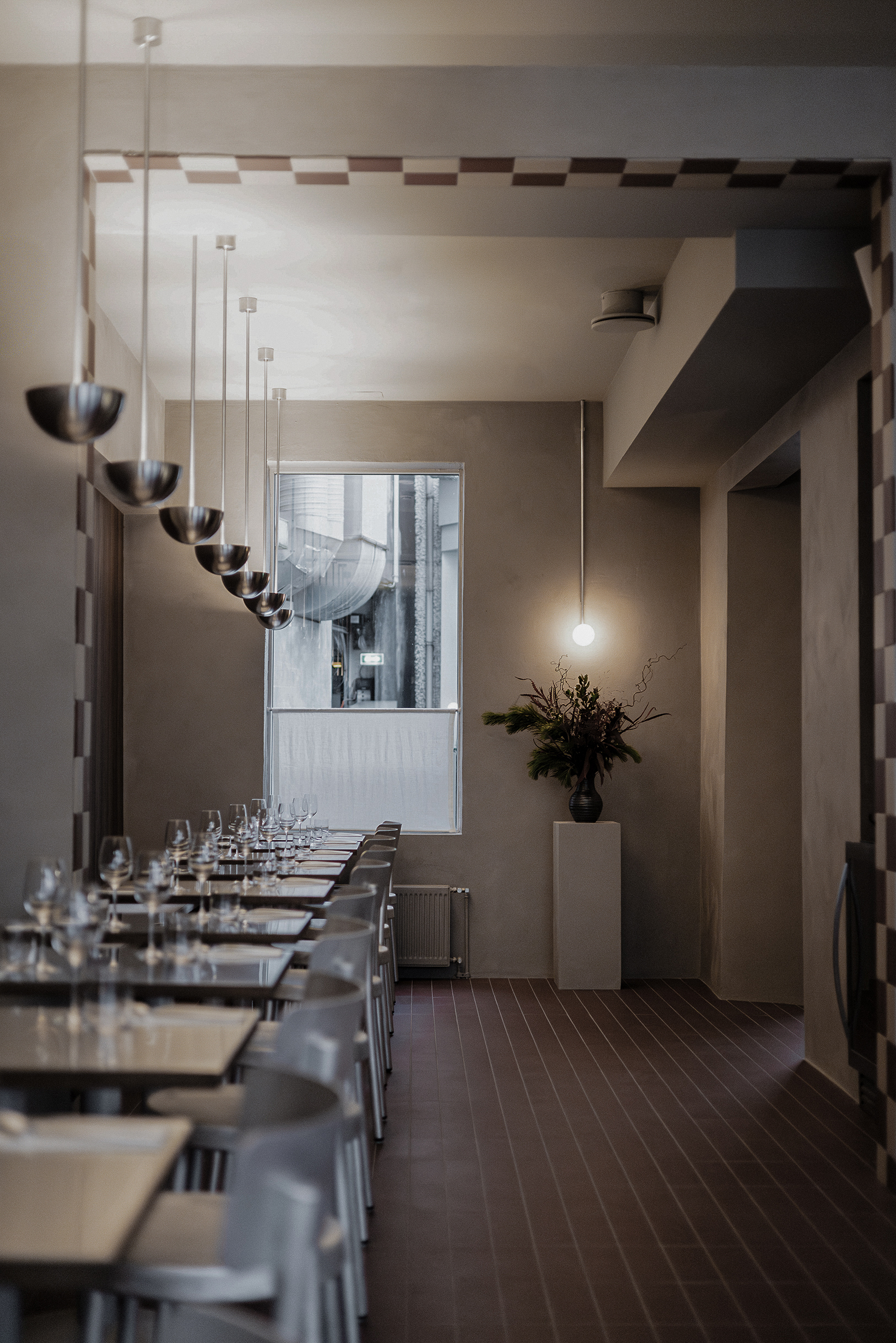 Osteria Bari is a restaurant and wine bar located in downtown Reykjavík, opening in December 2025. Aron Freyr and I developed the project in its entirety at Sítrus, designing everything from the branding to the interior concept. Drawing inspiration from the warmth, simplicity, and convivial atmosphere of traditional Italian osterias, the space is furnished with chairs and wall lights by FRAMA, while the pendant lighting above the dining tables was developed in collaboration with Casegoods. A custom-sized pendant light above the bar was designed by Caia Leifsdotter. The material palette combines burgundy tiles from TopCer with walnut paneling, steel, and linen, creating a rich yet understated environment that balances warmth and durability.